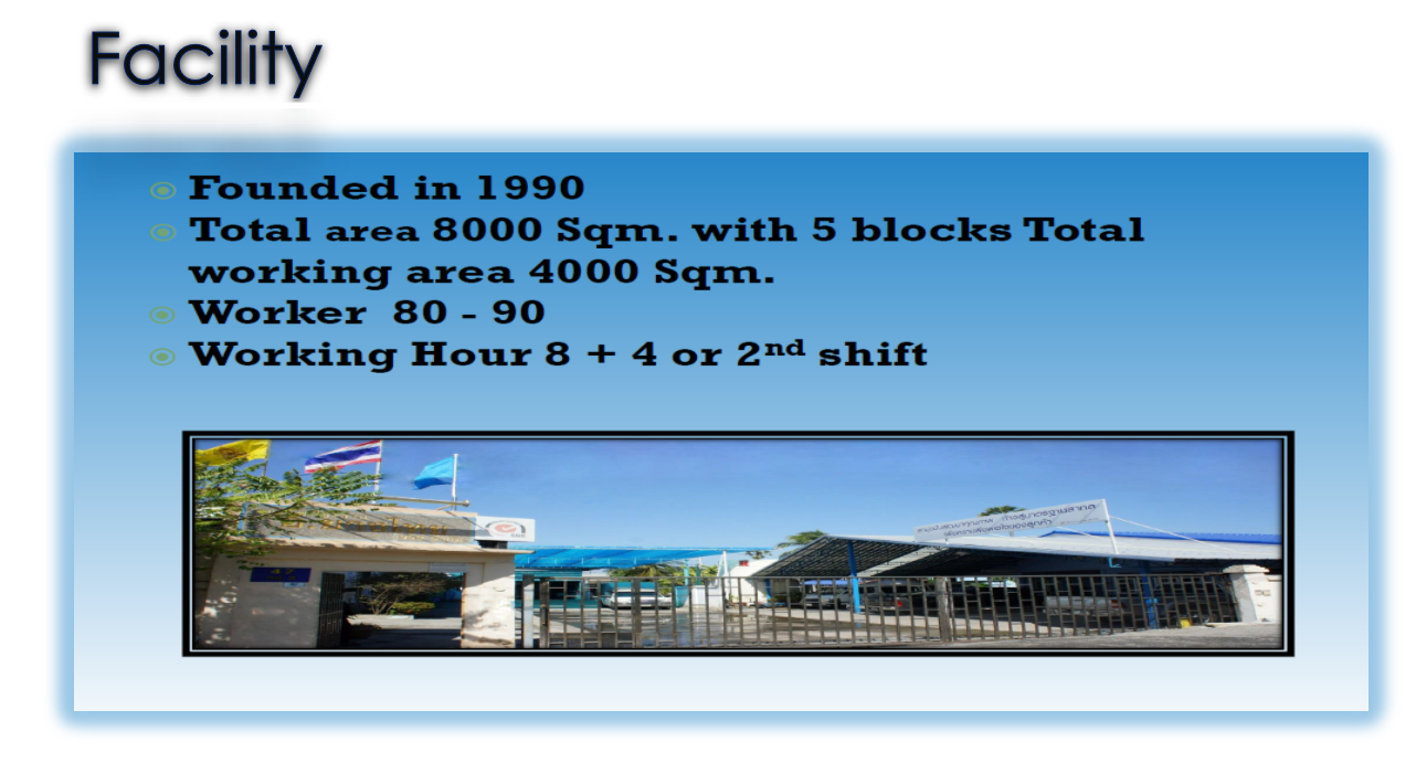 As per our experience, more than 20 Years, we understand customer as well, At the present we serve to many kind industry in Thailand such as Automotive, Electornics, Tube. Etc.